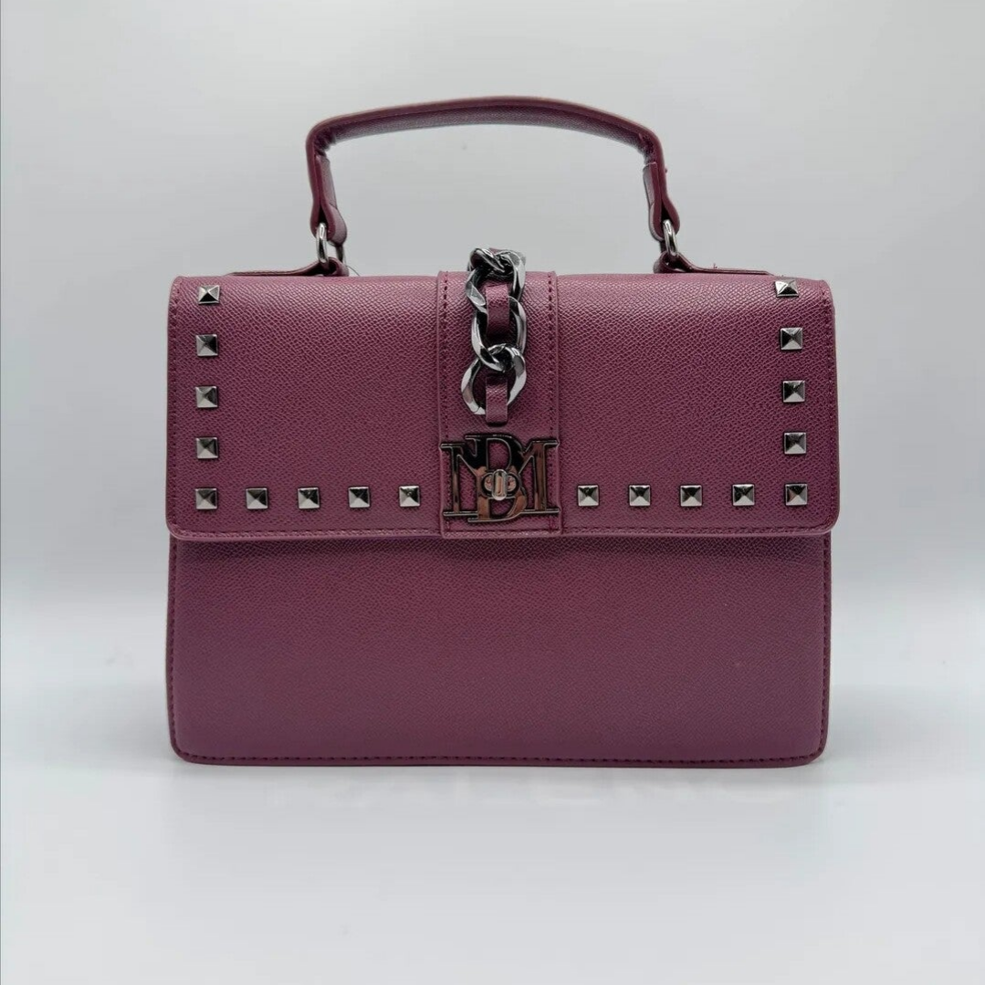 Small Badgley Mischka vegan leather Handbag, NWT,. This stylish studded plum beauty w/ silver hardware is perfect for any occasion, it combines elegance with a sole style.