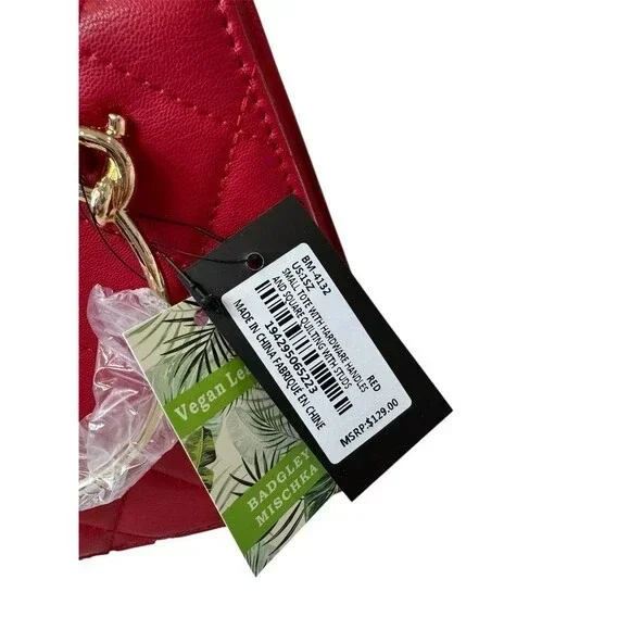 The Badgley Mischka Red Quilted Bag with Gold Accents is a stylish and versatile accessory for women. Made of leather and featuring a zip closure, this medium-sized bag is perfect for everyday use. The gold hardware and detachable strap add a touch of elegance,