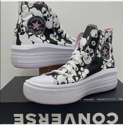NWT Black and white design Women's Converse. Thick Sole and stylish with just a hint of pink