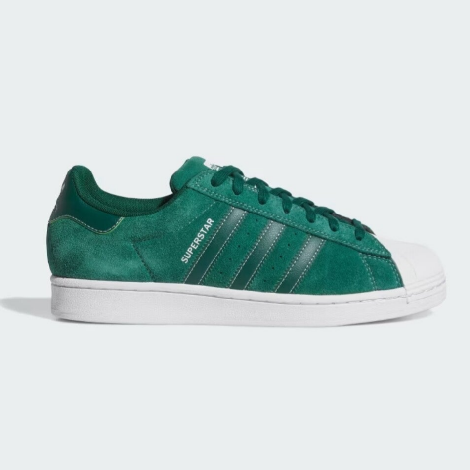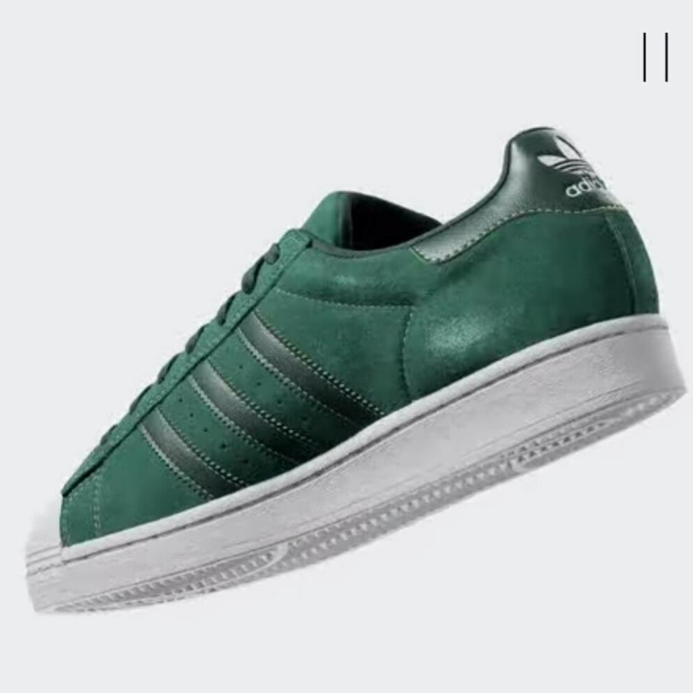 Green on Green Shelltoe Superstars with leather adidias stripes and green suede. Size 10.5M
