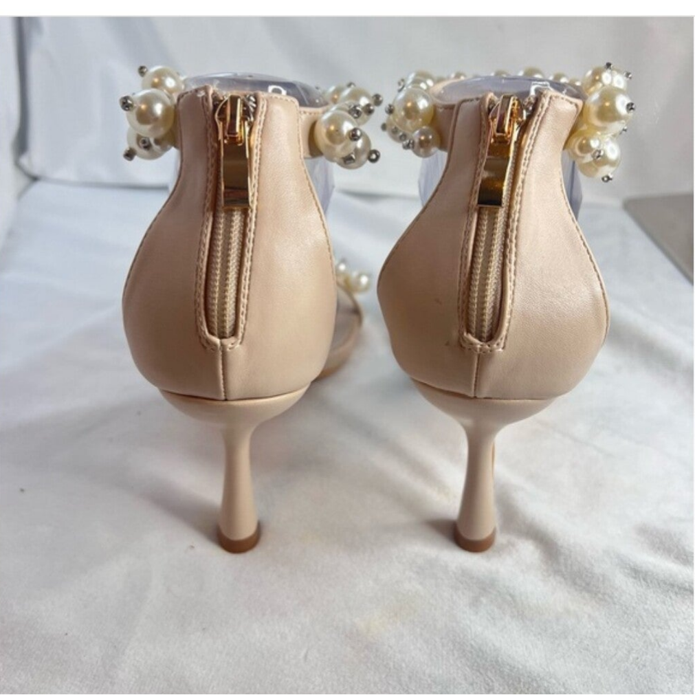 - Pearl and bead wrapped vamp