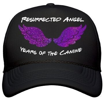 Resurrect from head to toe with this black Years of the Canine cap with the sparkling wings of an angel.