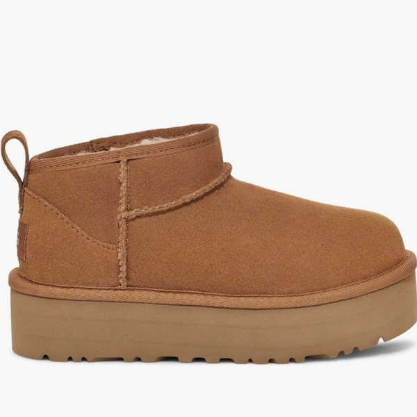 A lofty platform sole brings kid-size drama to this wear-everywhere boot made with handy back pull-loops for easier entry. The cozy lining is UGGplush, a moisture-wicking textile made from a wool-rich blend but crafted to feel and wear like genuine shearling.