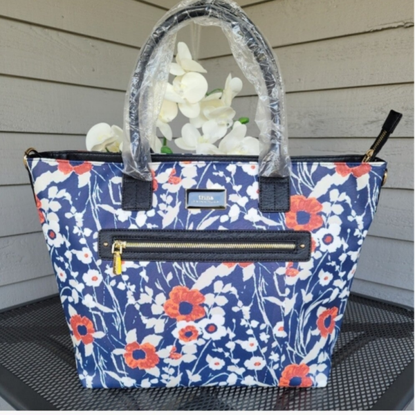 This Trina Turk tote is a must-have for any fashion-forward woman. Made of high-quality vegan faux leather, this tote is both durable and stylish.