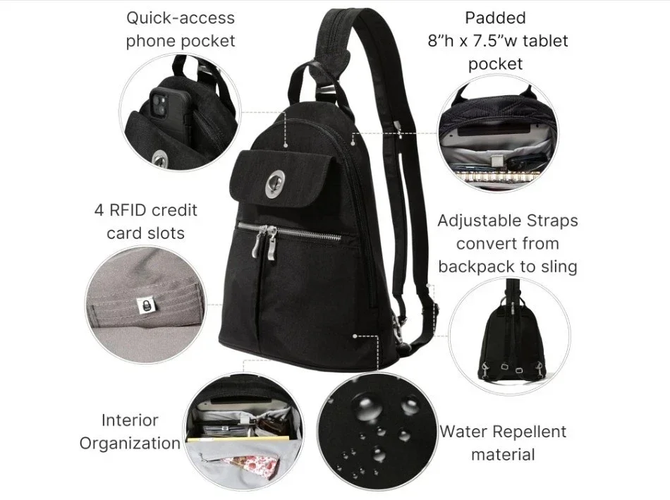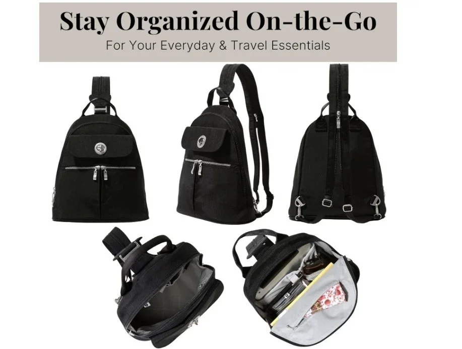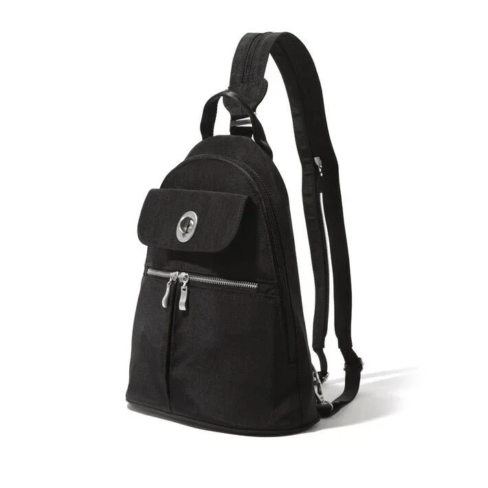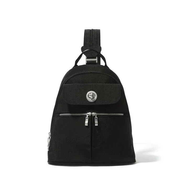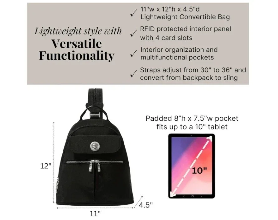 BAGGALLINI Naples convertible nylon padded women's small backpack sling bag -BLK