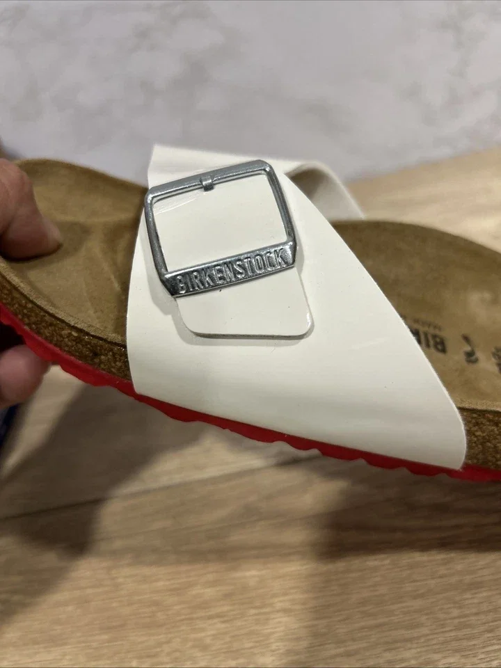 Birkenstock Madrid White Patent/Red Bottom Sandals Size 11W/9M