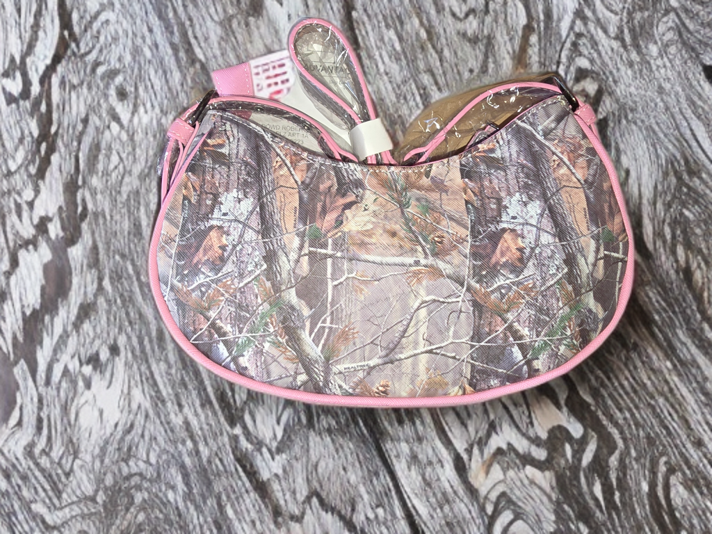 This is a rare & Oddly beautiful camoflauge shoulder bag with pink piping to outline its gorgeous shape. Accented with a Silver Antler heart shape decoration in the center of the bag. Adjustable buckles on the strap, lined in pink and a small amount of camo on the inside zipper pocket. This bag comes with its very own dust bag with the J DAWT brand on it. Very sexy for the girl who likes the outdoors.