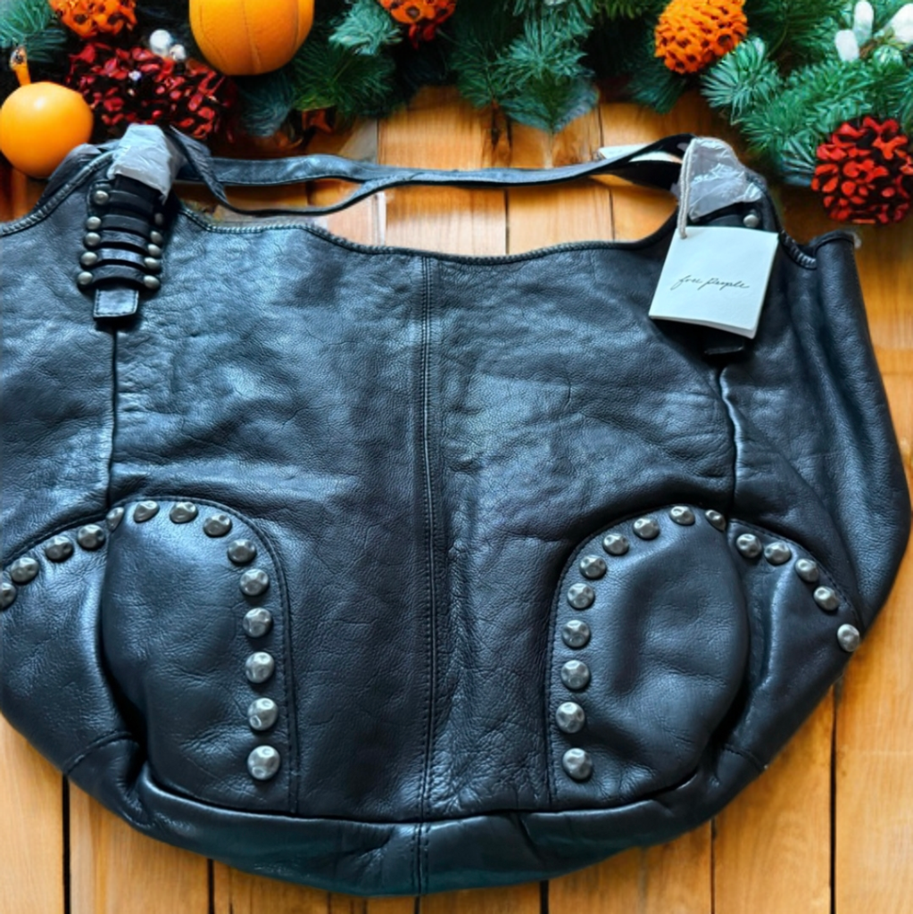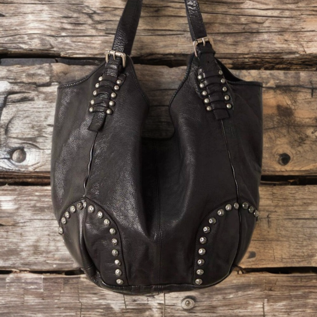 Free People Bushwick Leather Studded Tote in Black. Designed to add the ideal touch of effortless edge to absolutely every look. The "Wear anywhere" tote is oversized with the softest leather and rugged studs. This bag can take you from day, to night and over night. With so much room to pack up everything but the kitchen sink. This will be a favorite in your collection and will last a lifetime.