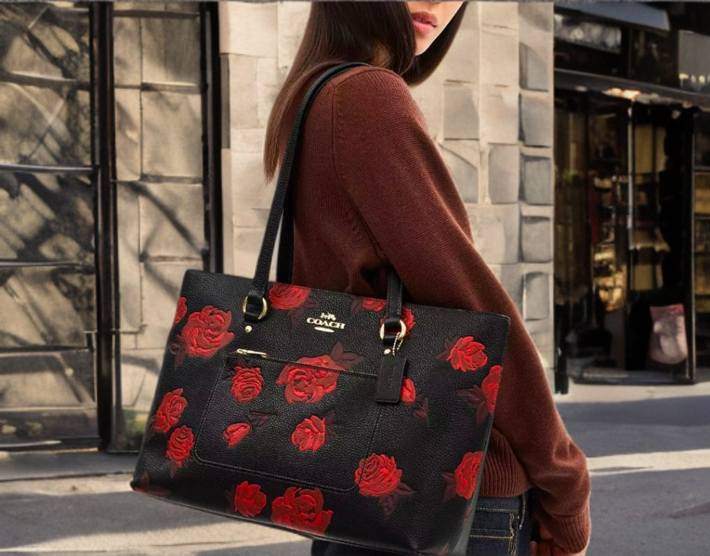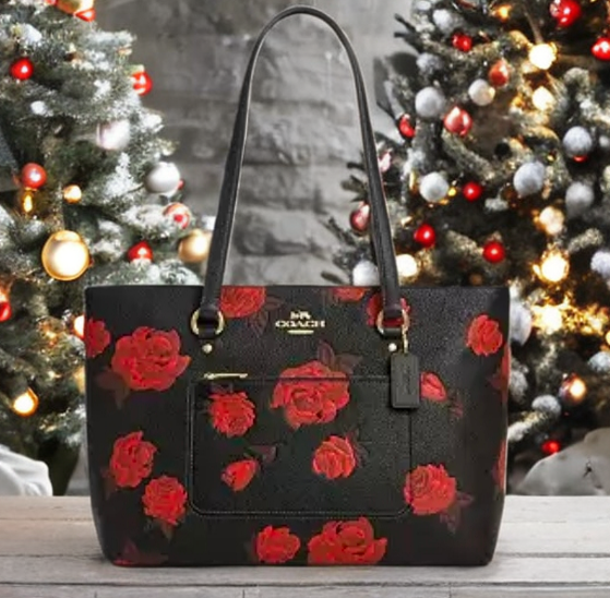 Beautiful Black leather tote with Red roses on it. Has a nice big roomy inside with a zip pocket. Perfect for the upcoming holidays for the busy woman going from work to a Holiday party or a night out. Enough room to carry all that you need for those daily transitions.