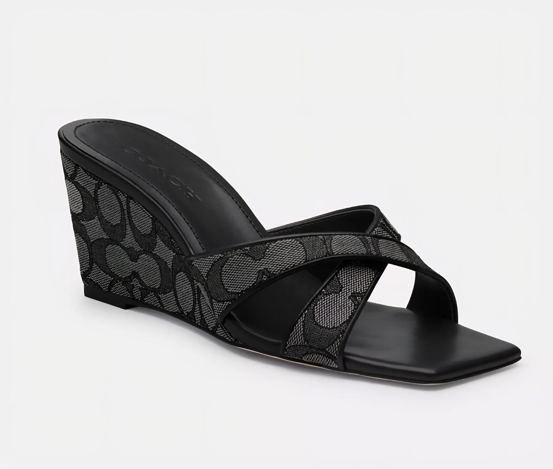 Coach Wedge Sandal Signature Jacquard Sz 8