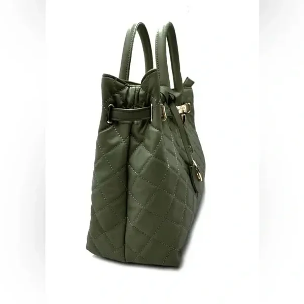 Absolutely stunning, This stylish large diamond quilted handbag in a chic 'Chive' green shade that is perfect for any occasion. Its elegant design and spacious interior make it a must-have accessory to add to your collection.
